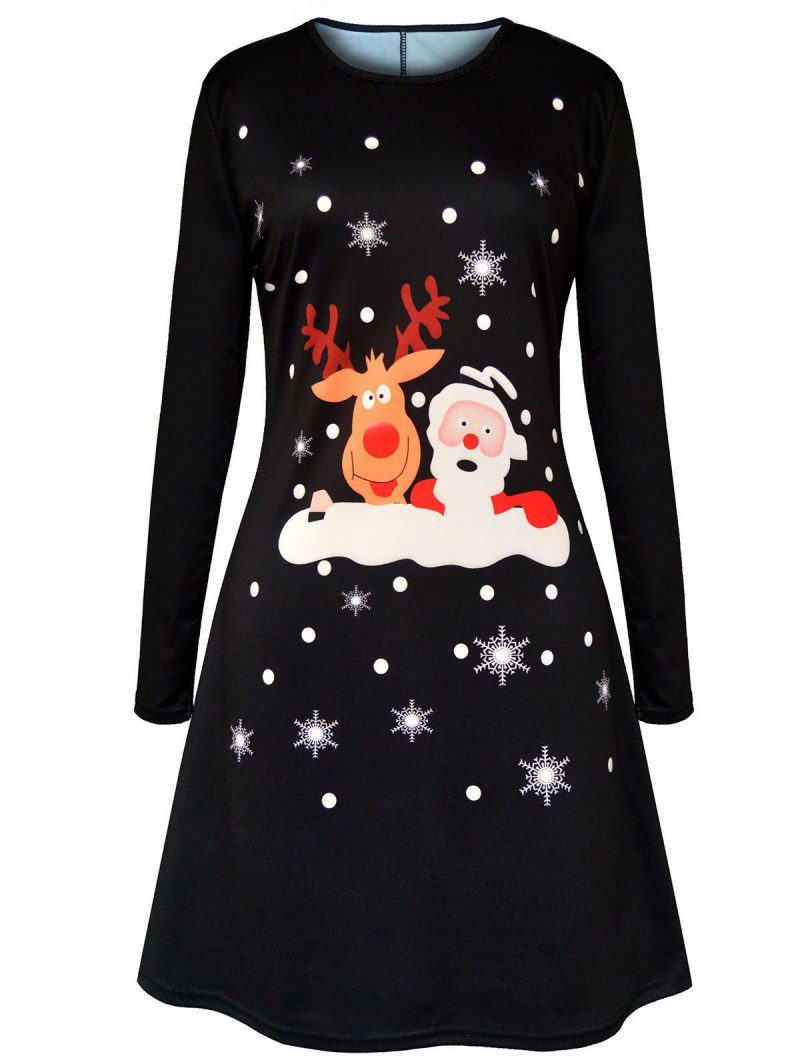 Christmas Cartoon Santa Claus Elk Print Dress