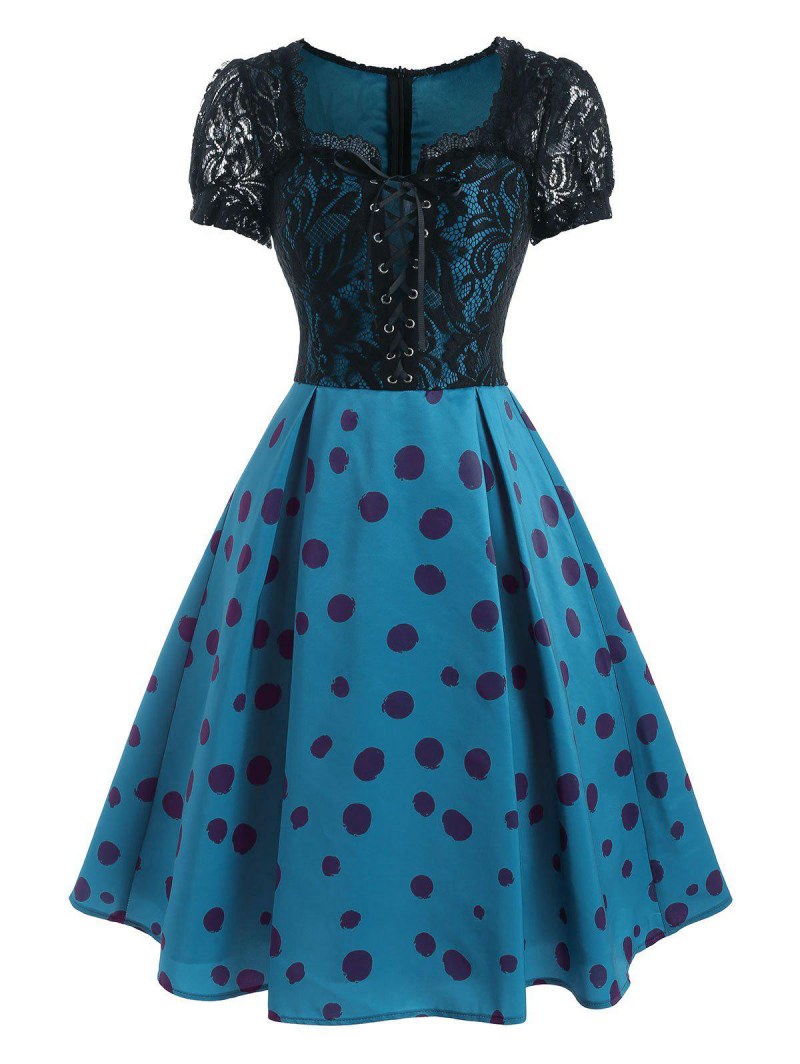 Dotted Lace Insert Lace-up Dress