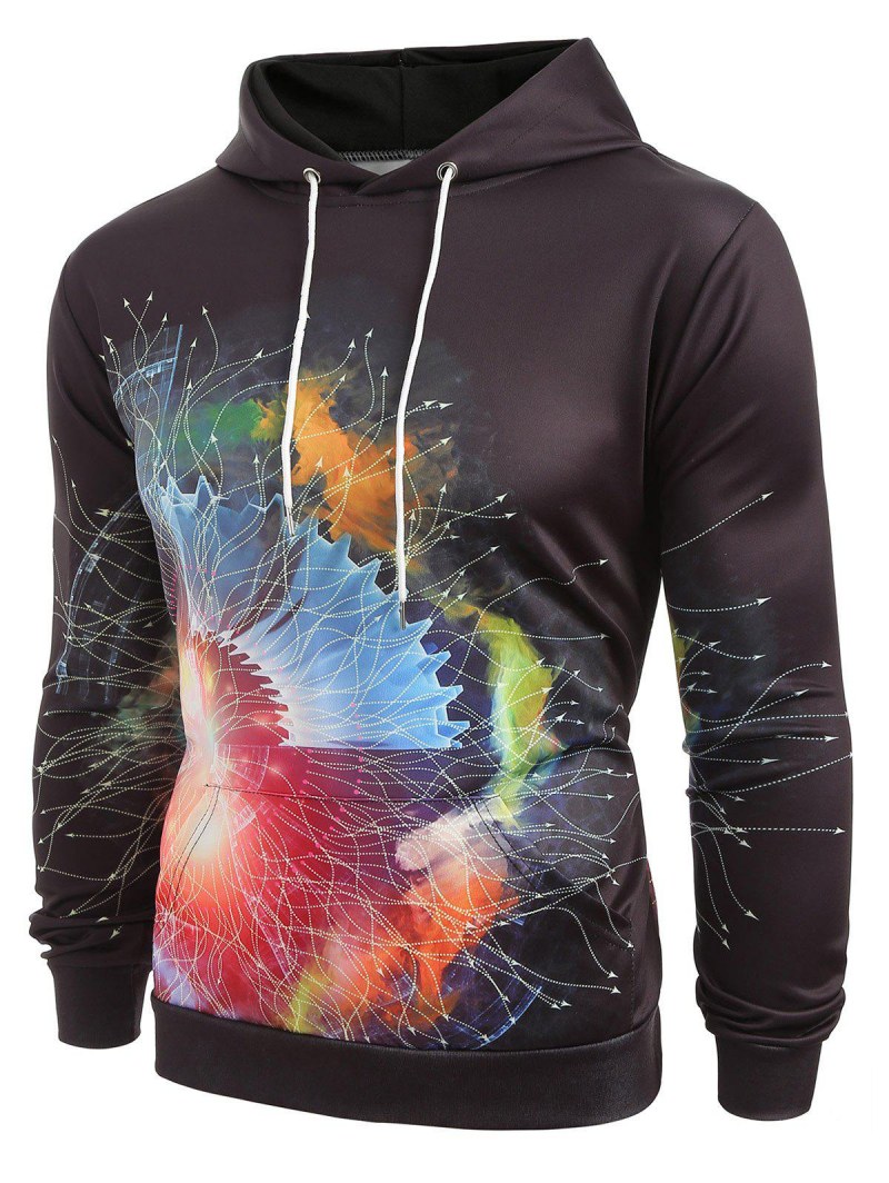 Colorful Printed Pouch Pocket Pullover Hoodie