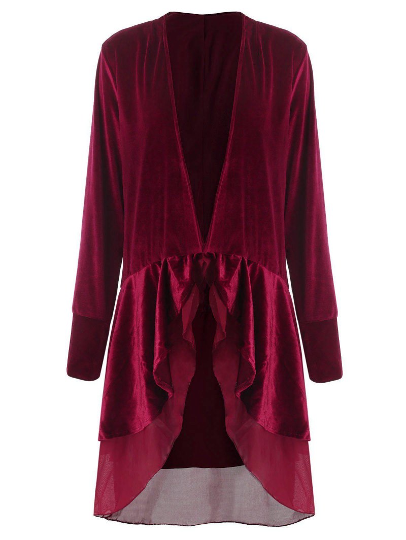 Stylish Long Sleeve Swingy Velvet Women's Coat